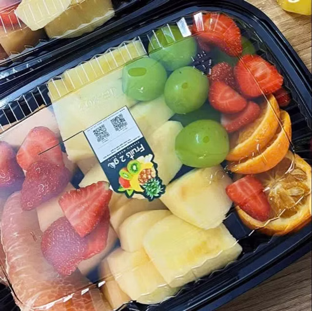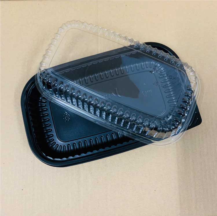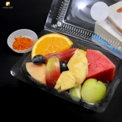 Nắp hộp được làm từ nhựa PET (Polyethylene terephthalate) trong suốt, giúp bạn dễ dàng quan sát thực phẩm bên trong.